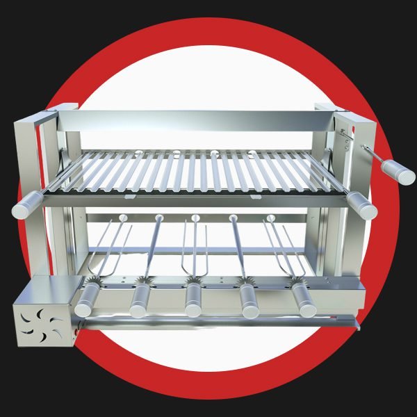 Aliando beleza, design e praticidade, oferece regulagem precisa em várias posições para o ponto ideal de cada carne. Combina o sistema tradicional de espetos com a inovação elevatória – o melhor dos dois mundos!