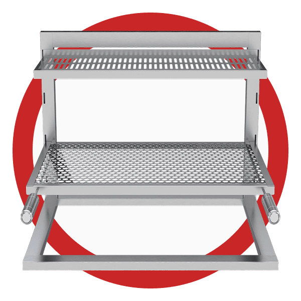 Design minimalista com excelente custo-benefício. Ideal para churrasco de grelhas próximo ao braseiro, proporcionando controle total da temperatura. 2 descansadores para preparar diversos tipos de alimentos no ponto da sua preferência.